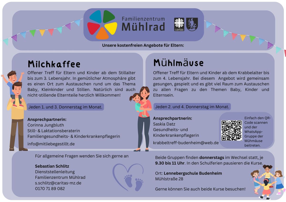 Jeden 2. Und 4. Donnerstag im Monat von 9.30 Uhr bis 11 Uhr Lennebergschule, Mühlstraße 28, Budenheim